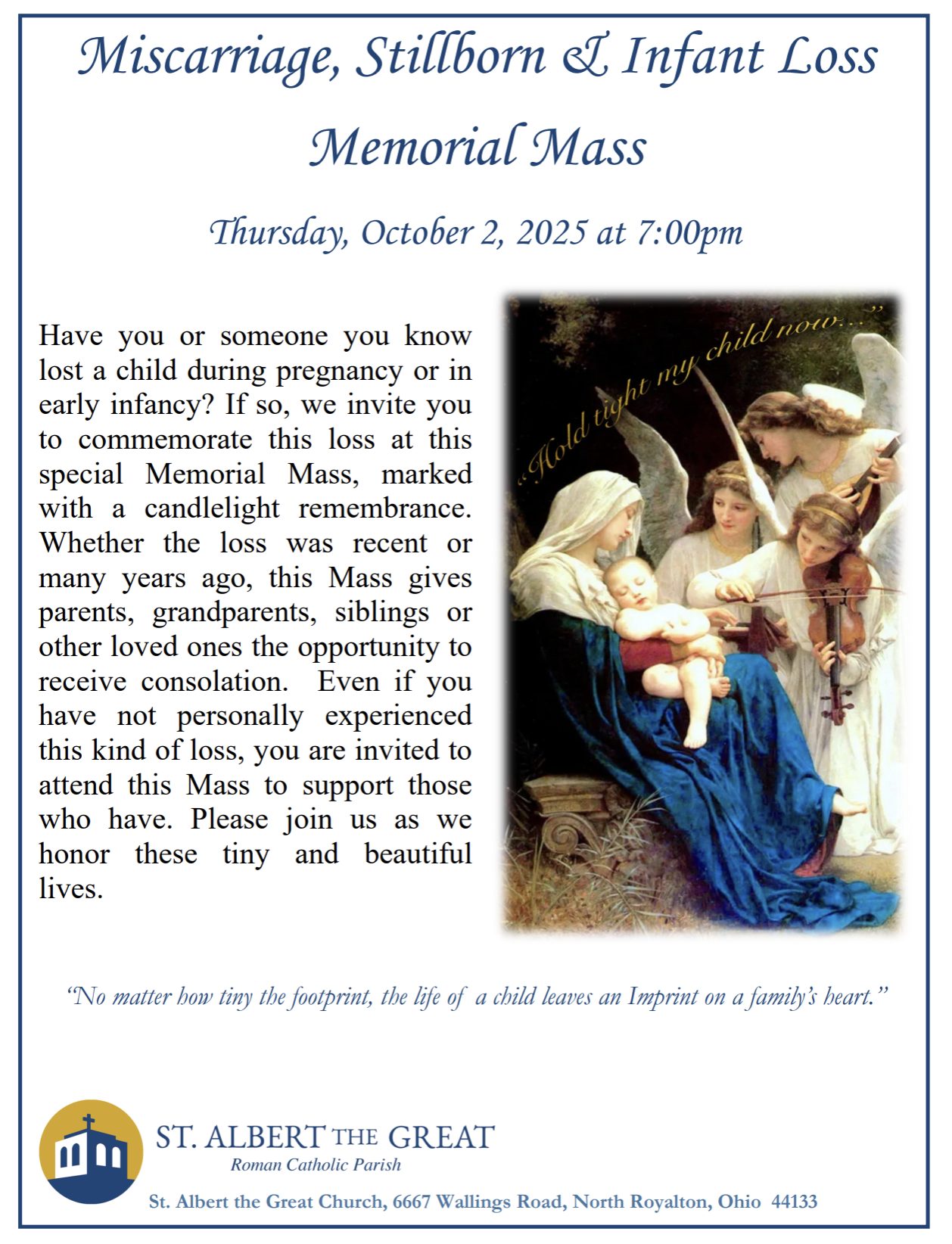 Have you or someone you know lost a child during pregnancy or in early infancy? If so, we invite you to commemorate this loss at this special Memorial Mass, marked […] |