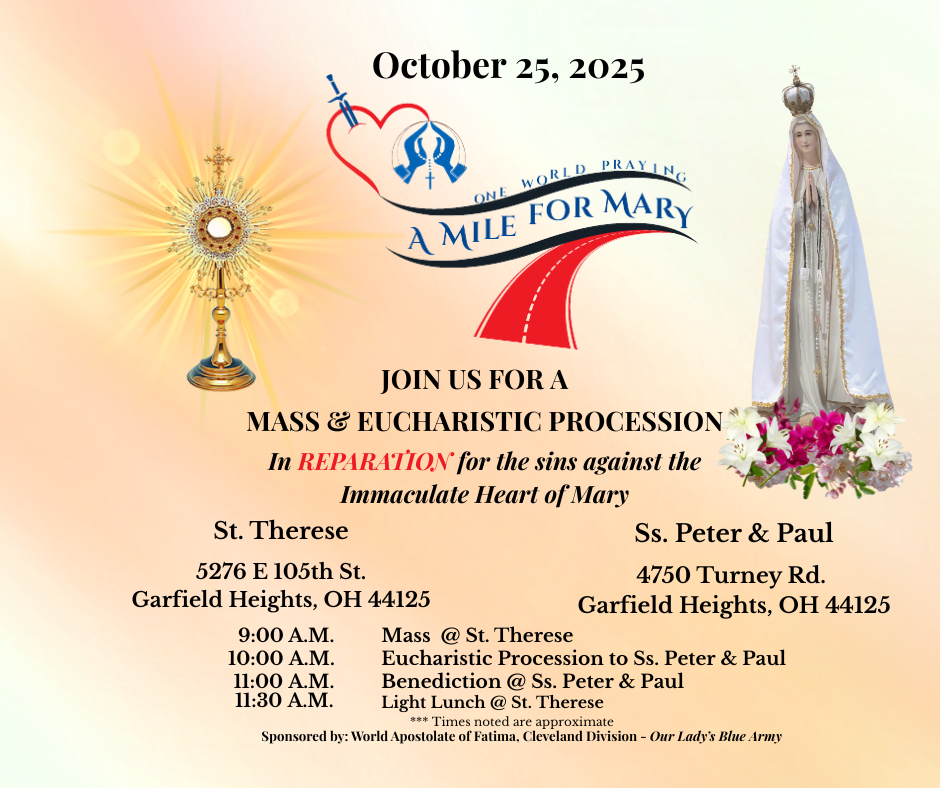 A Mile for Mary – Mass & Eucharistic Procession of Reparation and Hope Sponsored by Our Lady’s Blue Army – World Apostolate of Fatima, Cleveland Saturday, October 25, 2025 | […]