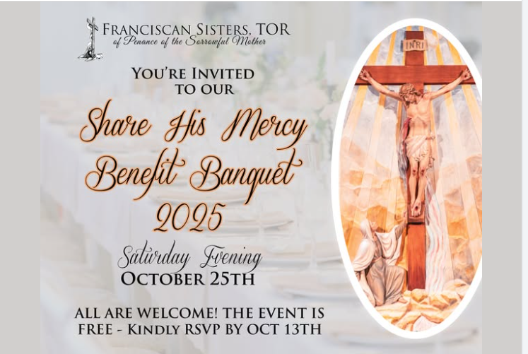The Franciscan Sisters, TOR, invite you to our Share His Mercy Benefit Banquet on Saturday evening, October 25, 2025. Join us as we honor our priests and reflect on how […] |